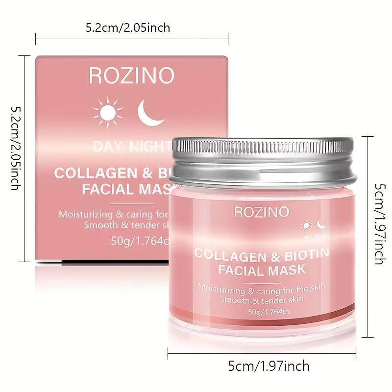 ROZINO Collagen Biotin Facial Mask reveal smoother, firmer, and deeply hydrated skin with the ROZINO Collagen + Biotin Facial Mask. This intensive sheet mask is enriched with skin-loving collagen and biotin to help improve elasticity, boost radiance, and support a healthier-looking complexion in just minutes.